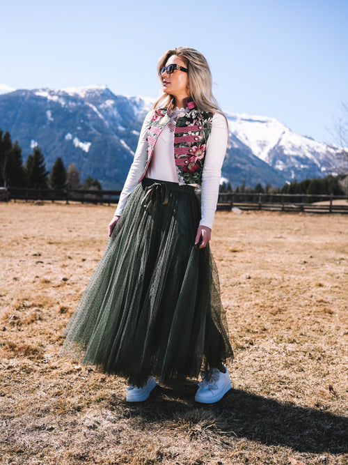 Inspiriert von der wilden Schönheit der Berge und getragen vom Mut zur Eigenwilligkeit, vereint jedes Stück alpine Elemente mit einem auffälligen, stilprägenden Twist. Es sind Kleidungsstücke, die auffallen dürfen – und Geschichten erzählen. Geschichten von starken Frauen, großen Auftritten und dem Gefühl, ganz bei sich zu sein.