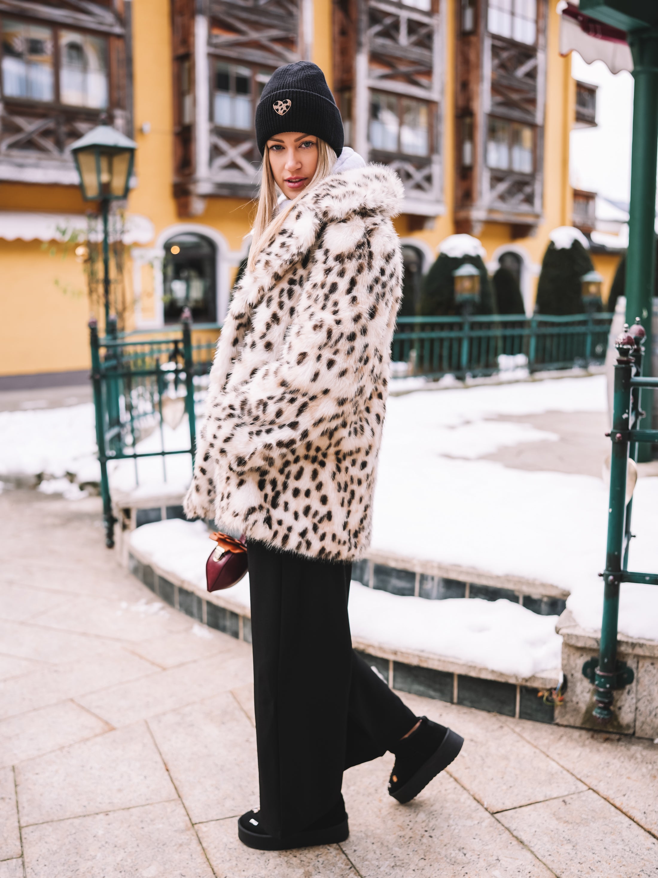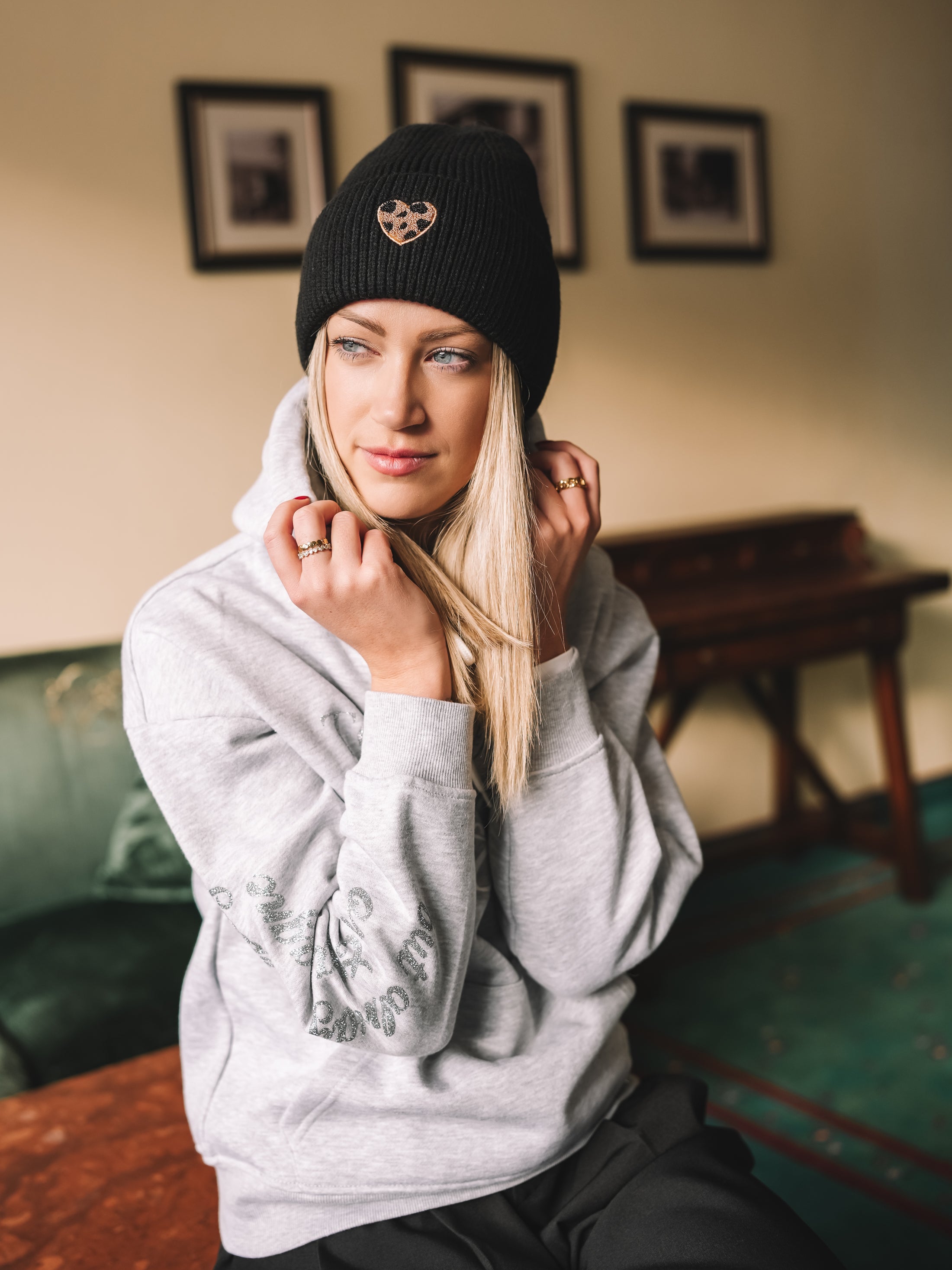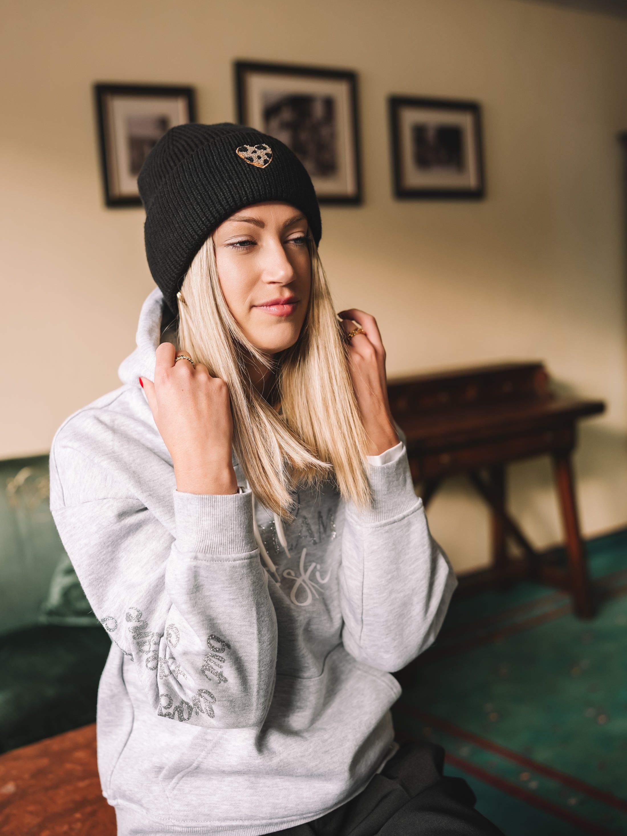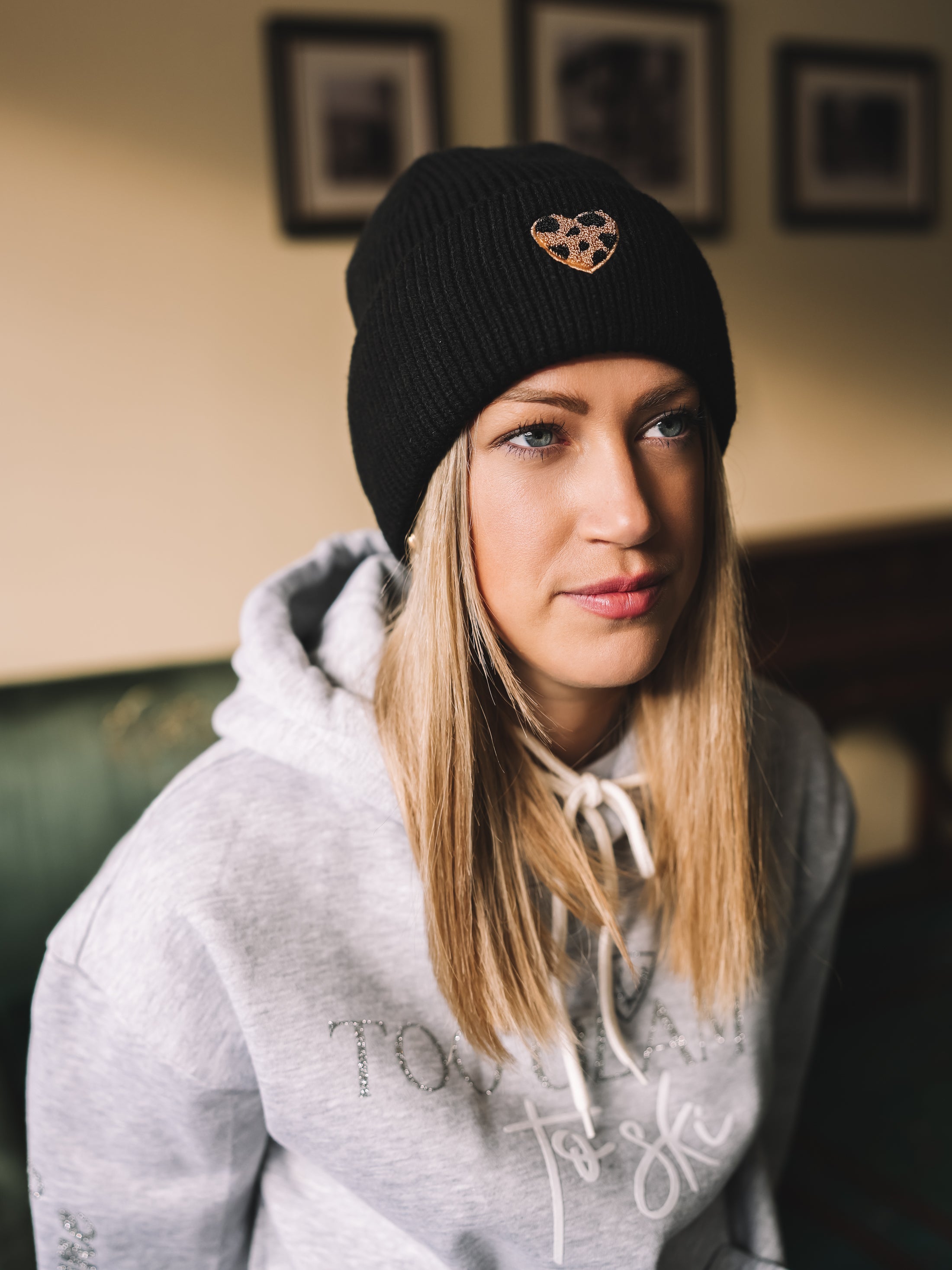 „Black Wildheart“ vereint zeitlose Schwarz-Eleganz mit einem dezenten, aber ausdrucksstarken Detail: einem kleinen Herz im Leo-Muster, das wie ein stilvoller Akzent wirkt und jedem Winterlook Persönlichkeit verleiht. Die Mütze sitzt weich und formschön und bringt eine feminine Note in jede alpine oder urbane Kombination.