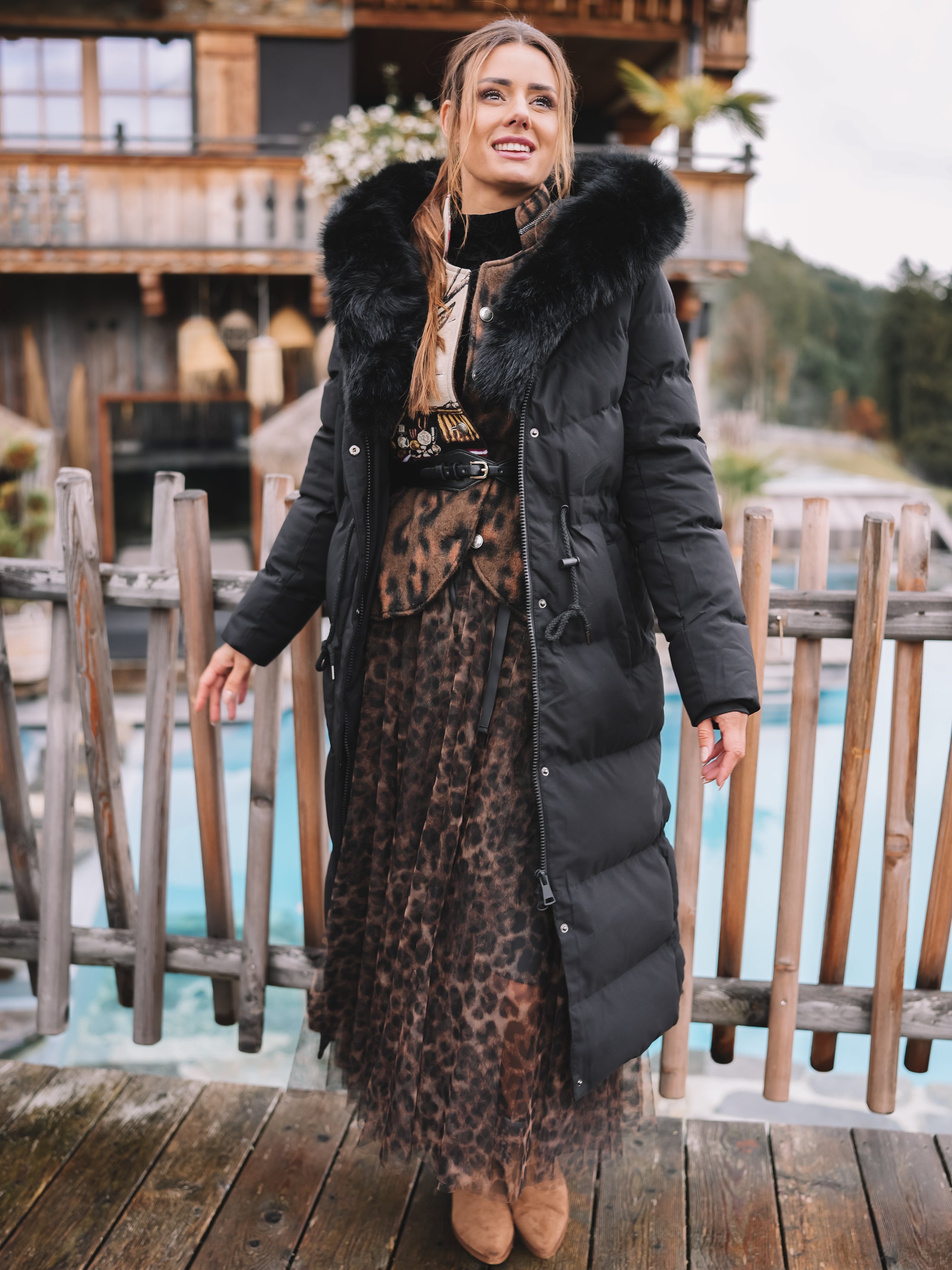 Ein Mantel, der jeden Auftritt besonders macht – Arctic Queen steht für Stil, Stärke und winterliche Anmut mit alpinem Flair.