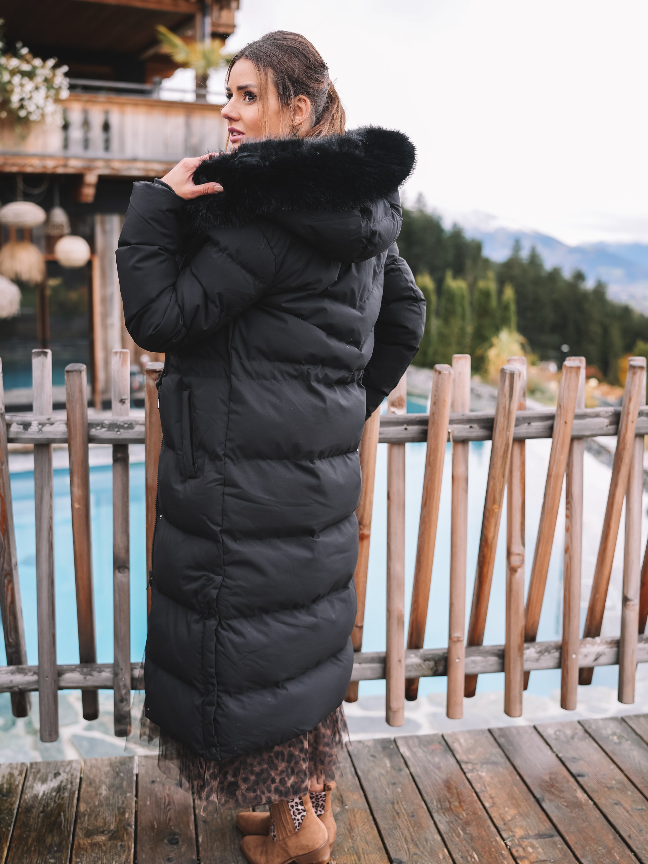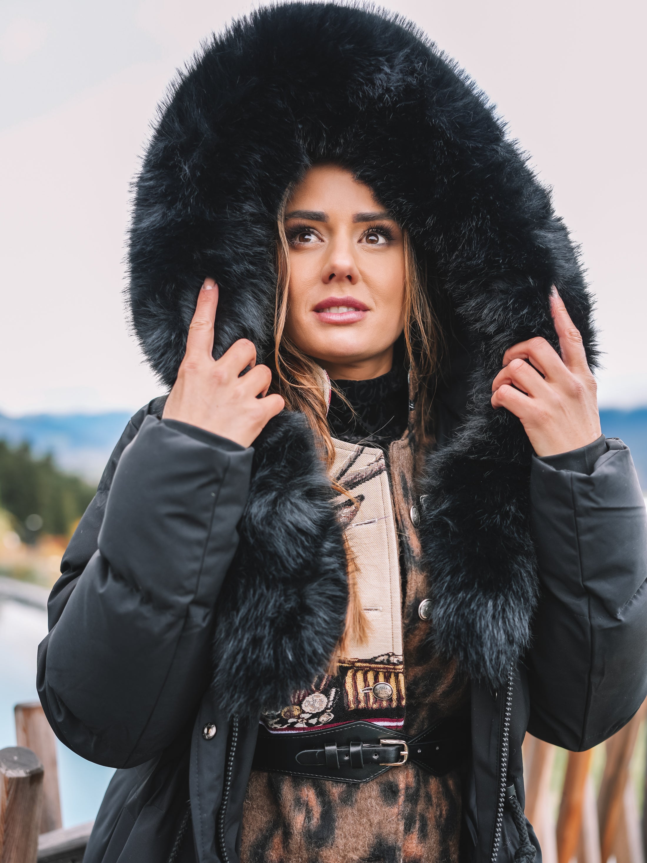 Der Mantel Arctic Queen vereint feminine Eleganz mit funktionaler Raffinesse – ein Winterstück, das Stil und Wärme perfekt verbindet. Die lange Silhouette verleiht ihm eine edle Ausstrahlung, während die pelzgefütterte Kapuze (nur der Kunstpelz ist abnehmbar) für einen luxuriösen Akzent sorgt.