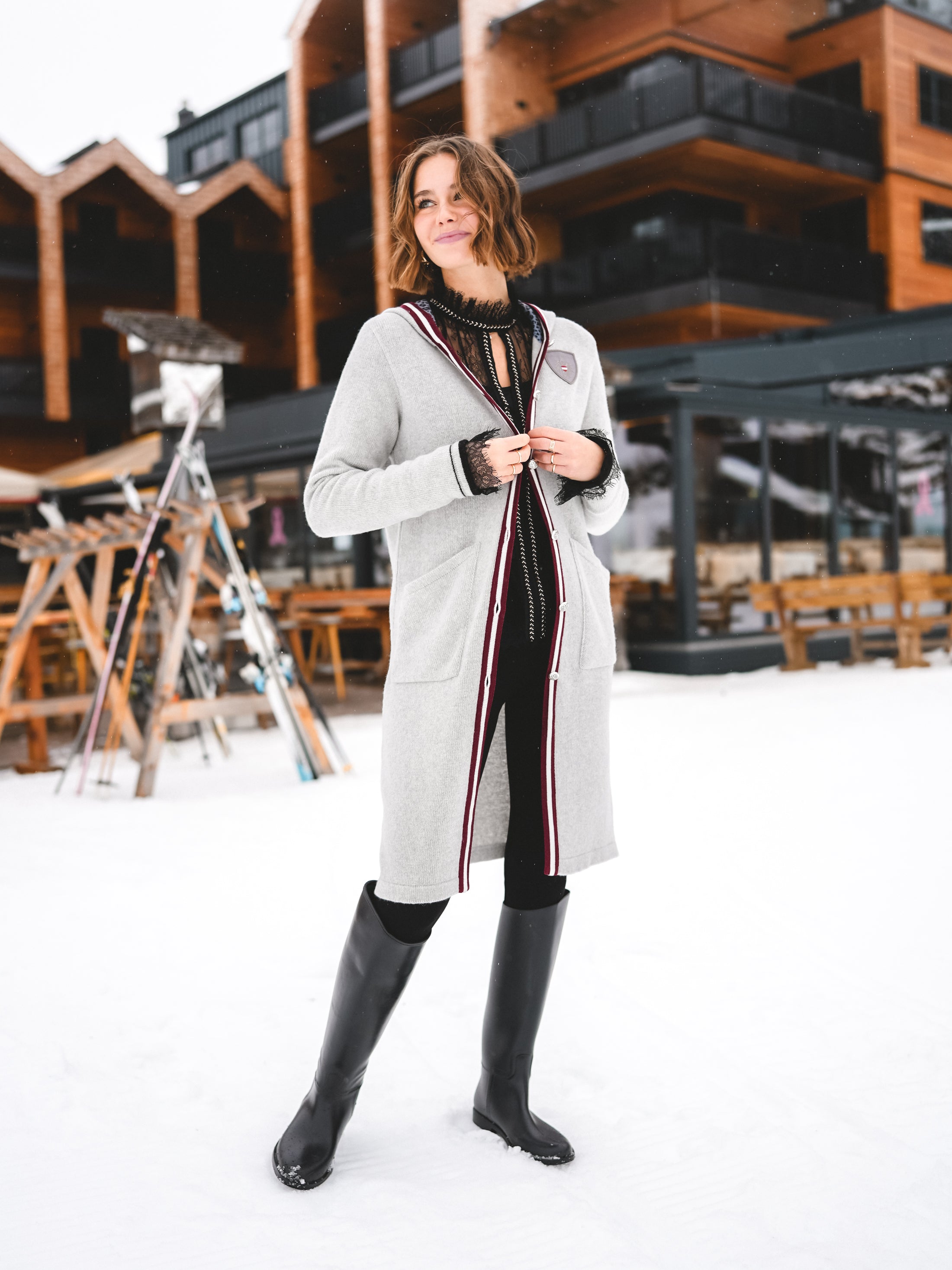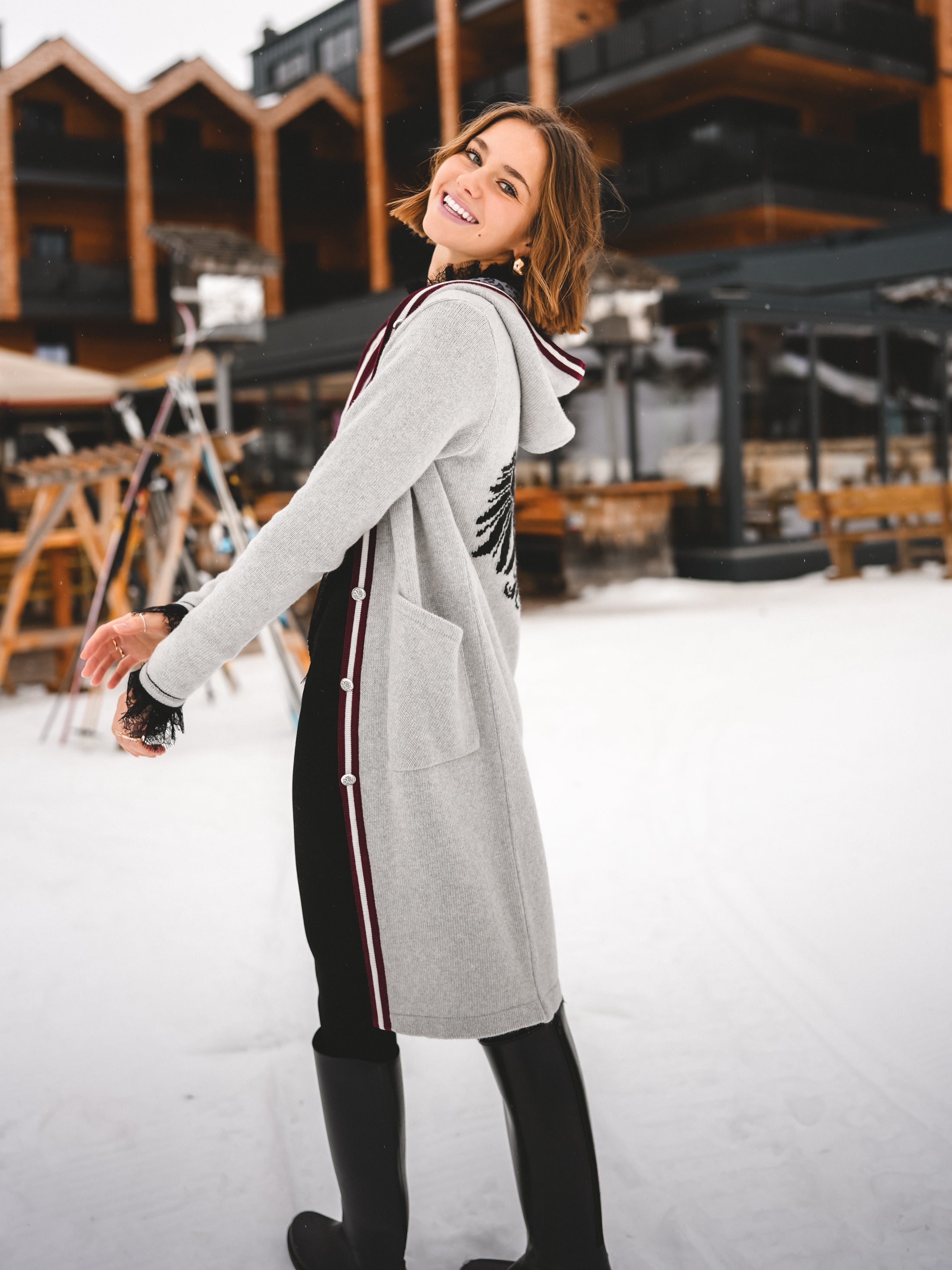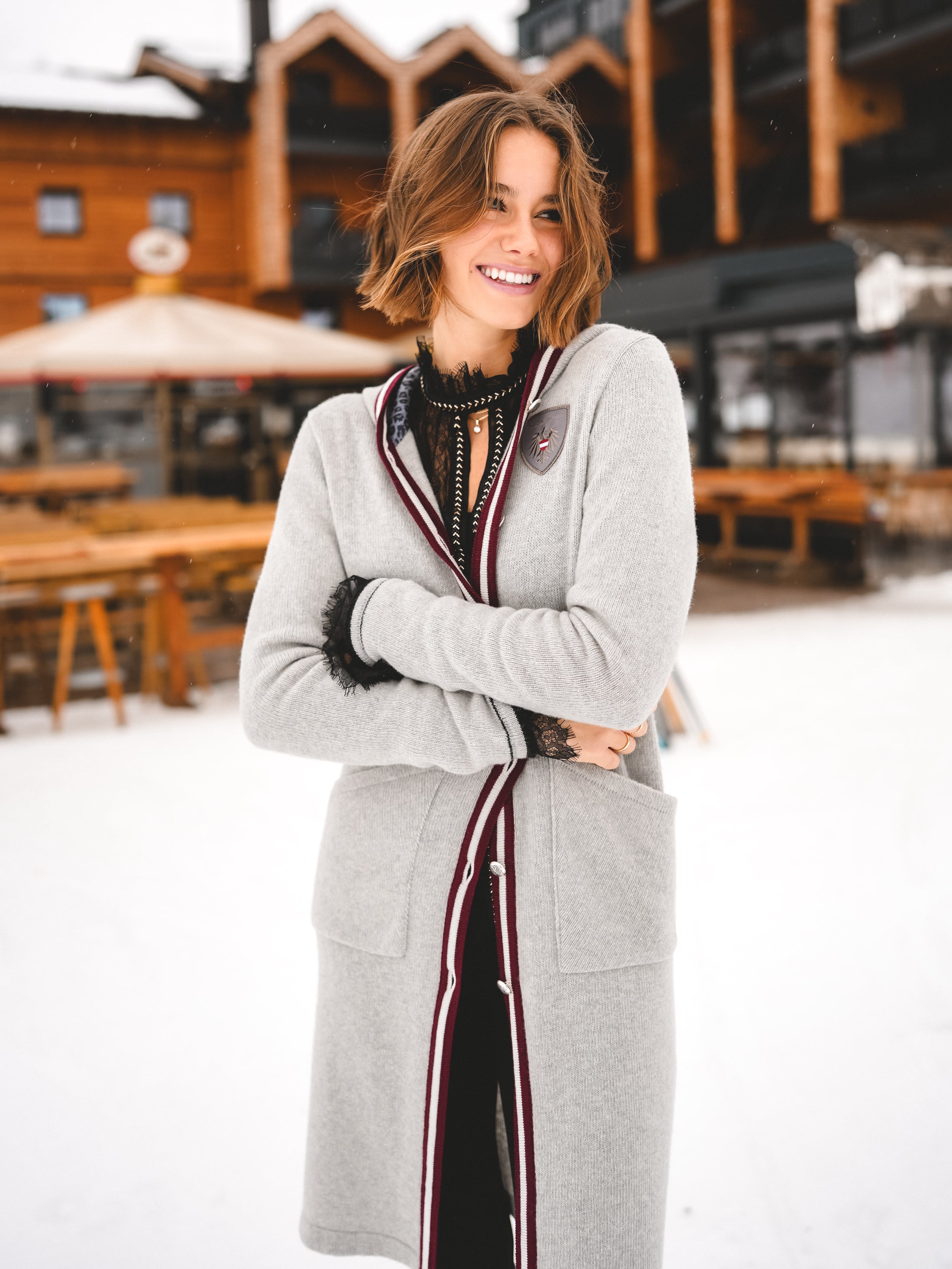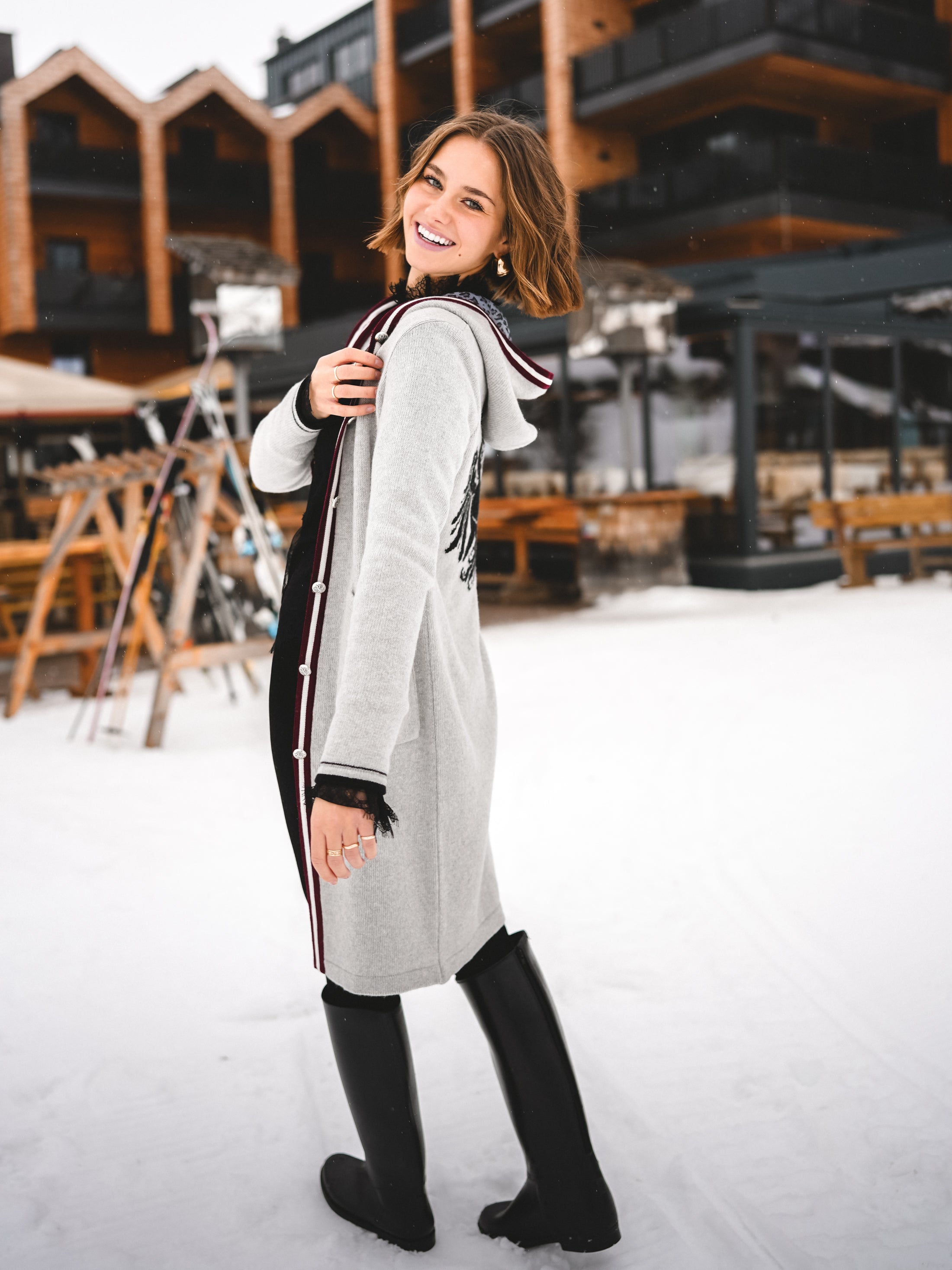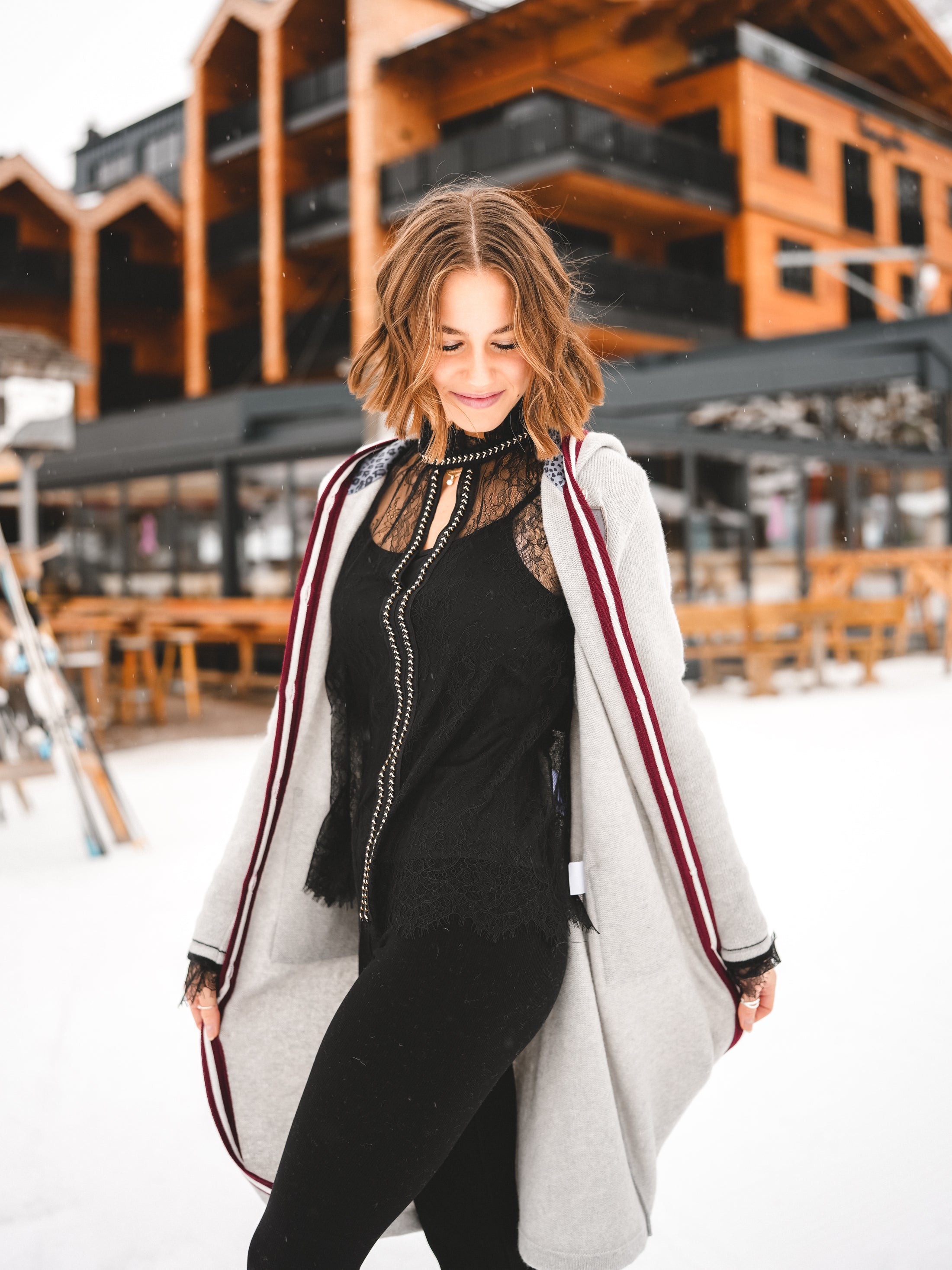 Ein Mantel, der das Gefühl echter alpiner Eleganz in jeden deiner Schritte legt. Alpenglück verzaubert mit seinem harmonischen Design, der markanten Rot-Weiß-Rot-Borte und der mit Leo gefütterten Kapuze, die jedem Look eine sanfte, gemütliche Note verleiht.