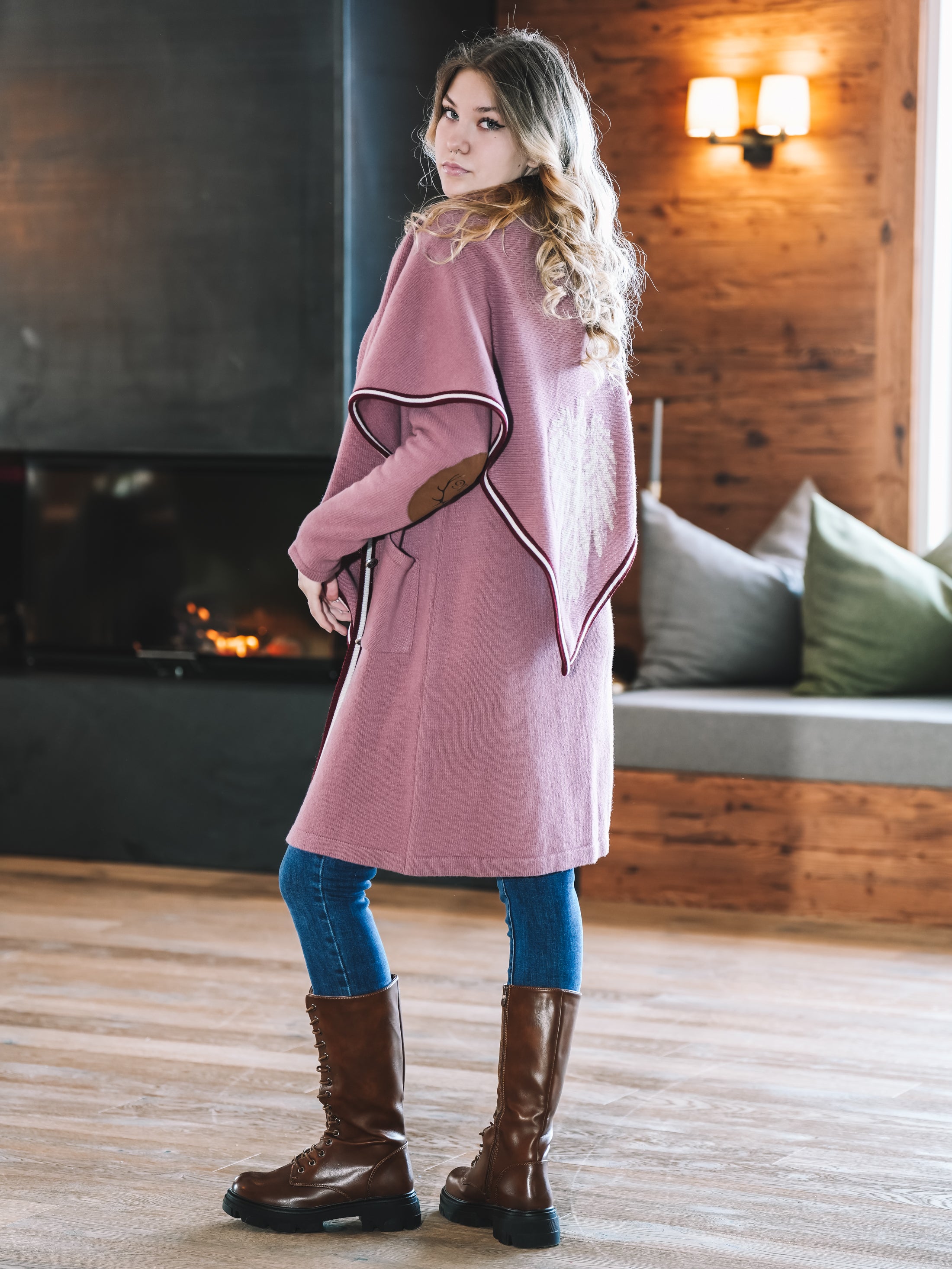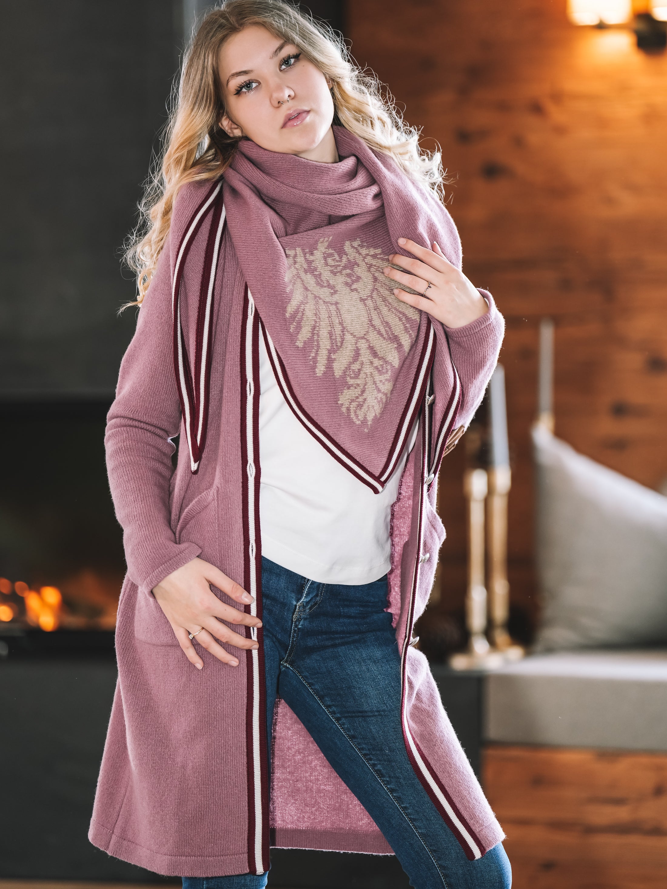 „Rosé Alpenpoesie“ verzaubert mit einem royalen Roséton, der Wärme und feminine Eleganz ausstrahlt. Der dezent eingestrickte Adler schenkt dem Tuch eine sanfte alpine Note, während die feine Rot-Weiß-Rot-Borte wie ein liebevolles Detail wirkt, das dem Design Tiefe und Charakter verleiht.