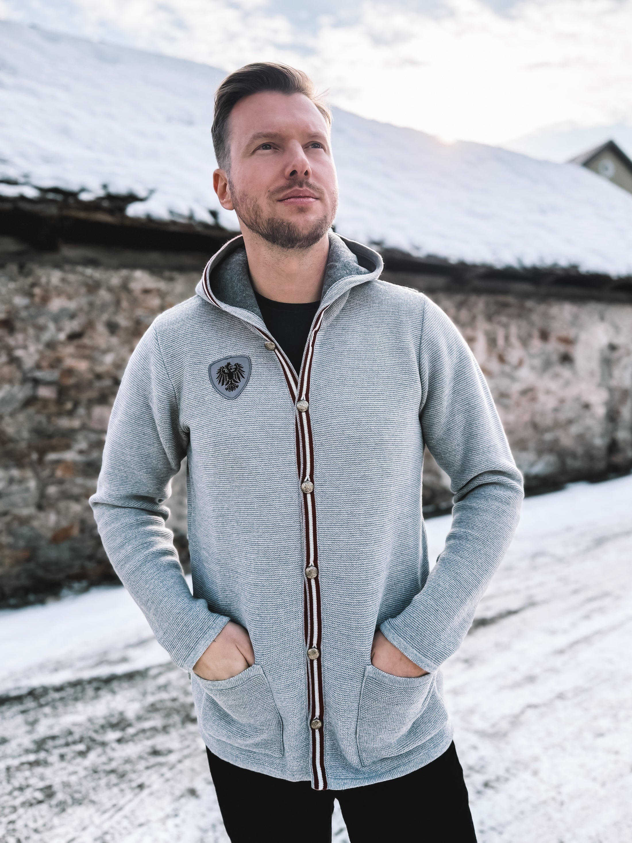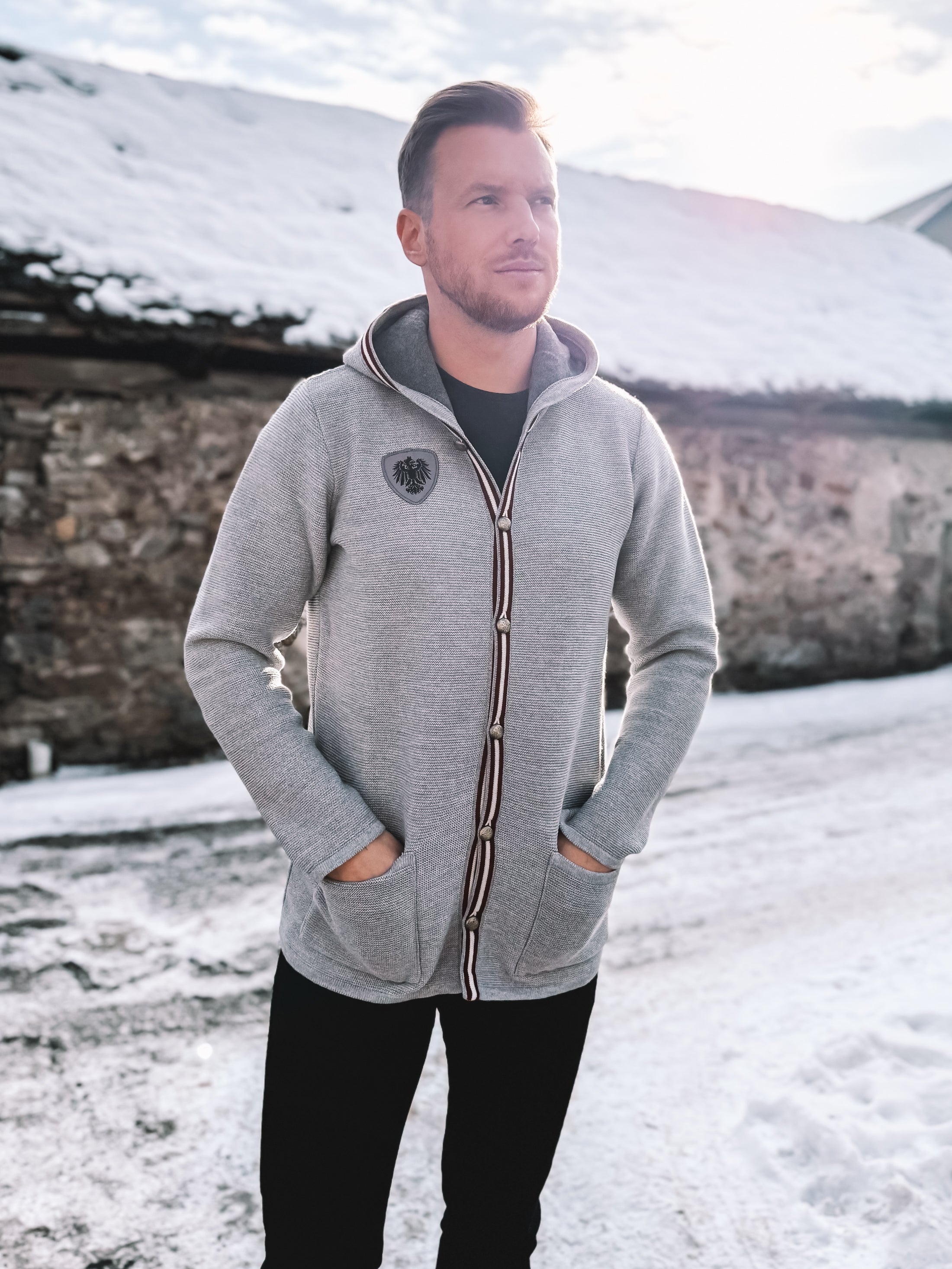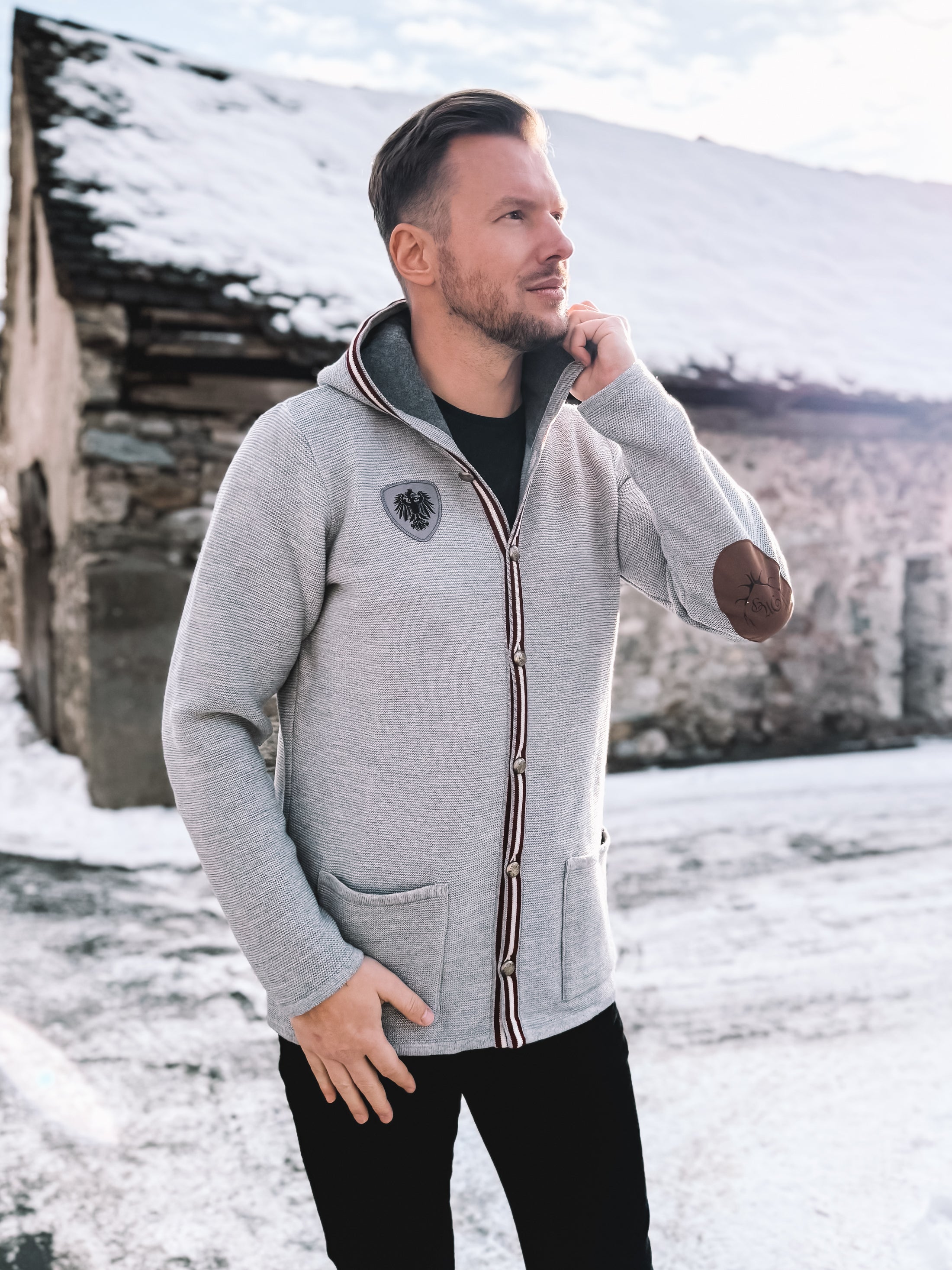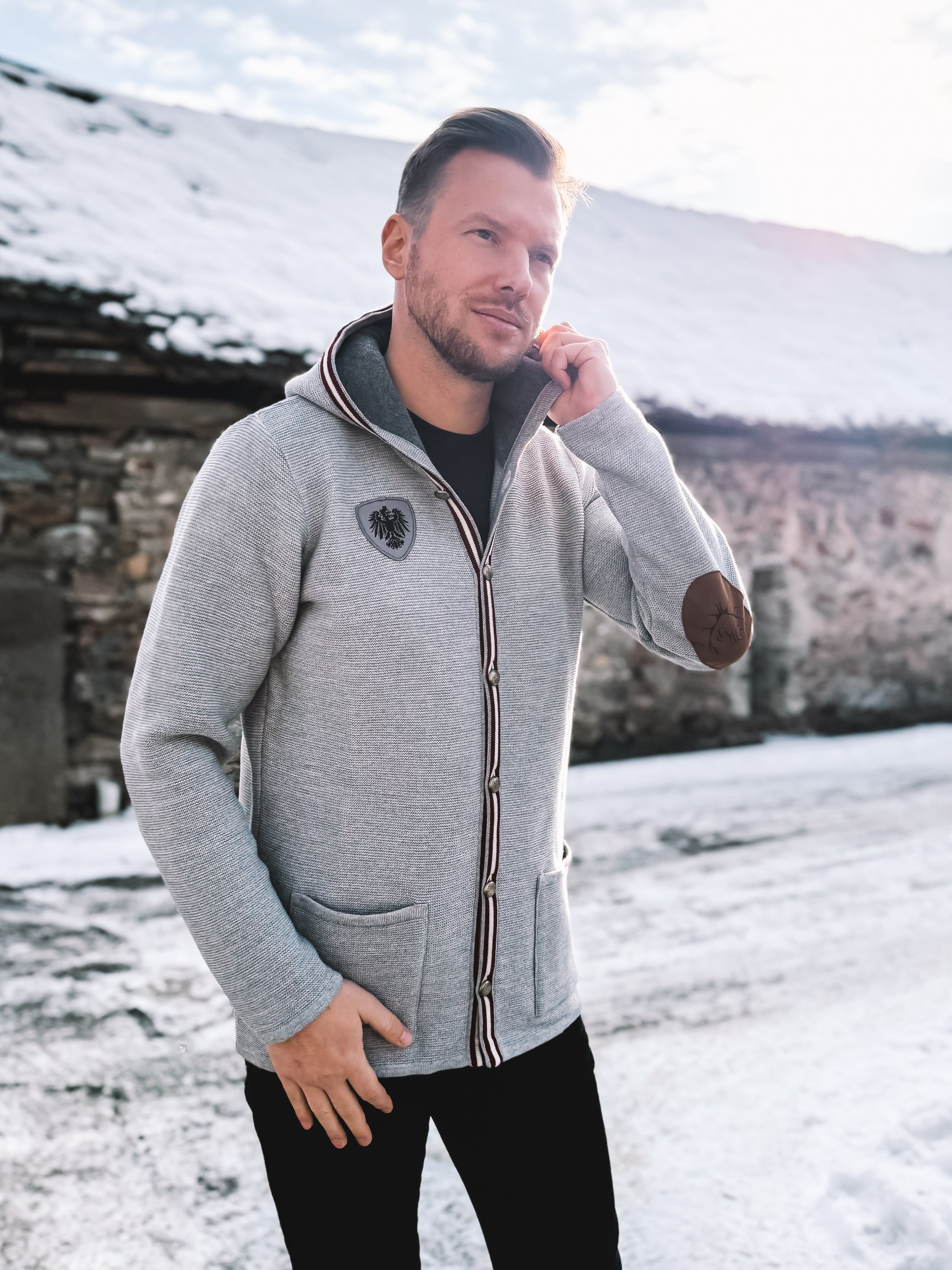 Ein stilvolles Strickteil für Männer, die Wert auf klare Designs, alpine Details und souveräne Alltagslooks legen.