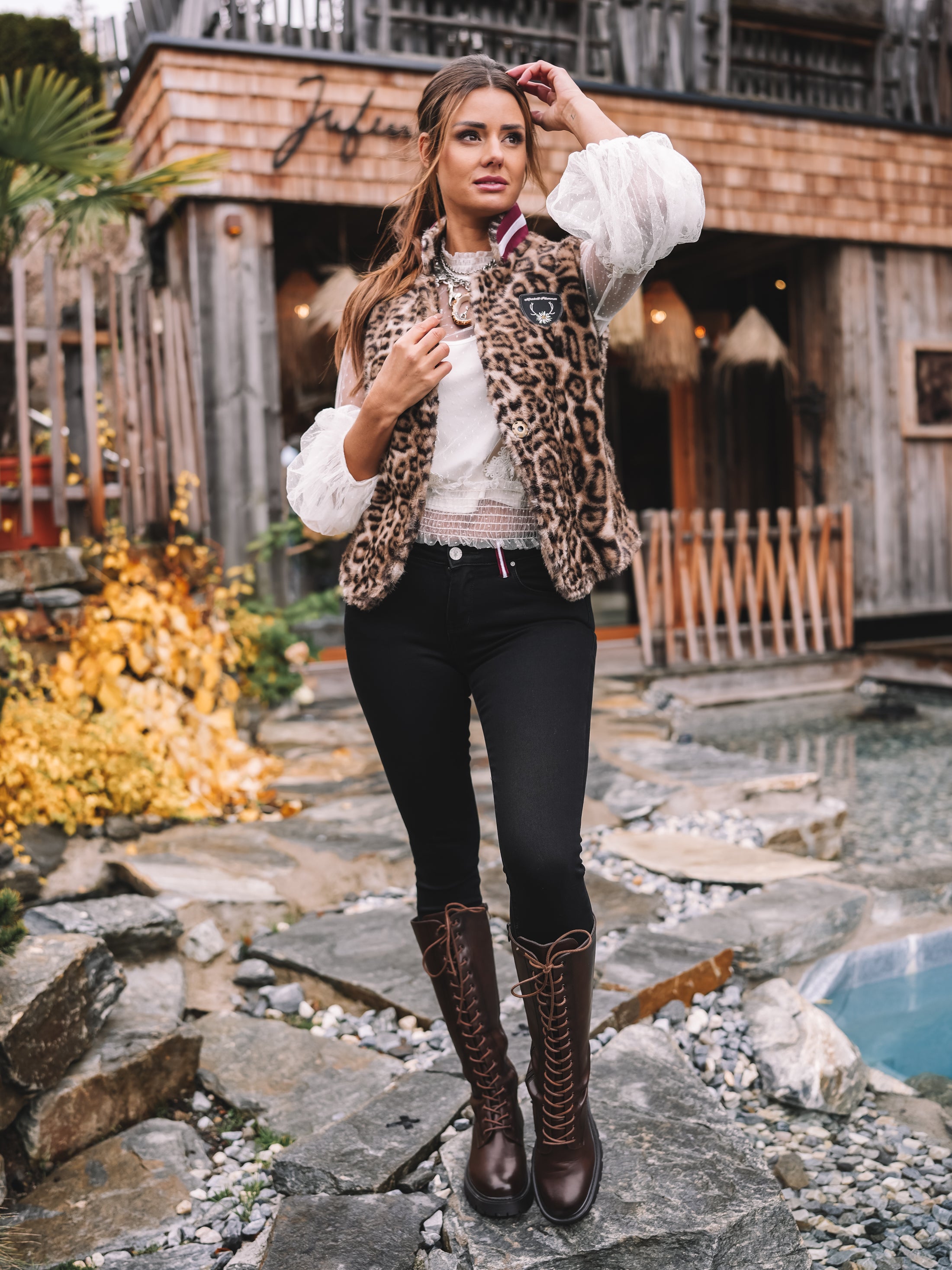 Leo Royale ist mehr als eine Weste – sie ist Ausdruck von Stärke, Weiblichkeit und alpinem Luxus. Ein Lieblingsstück, das jedes Outfit auf besondere Weise vollendet.