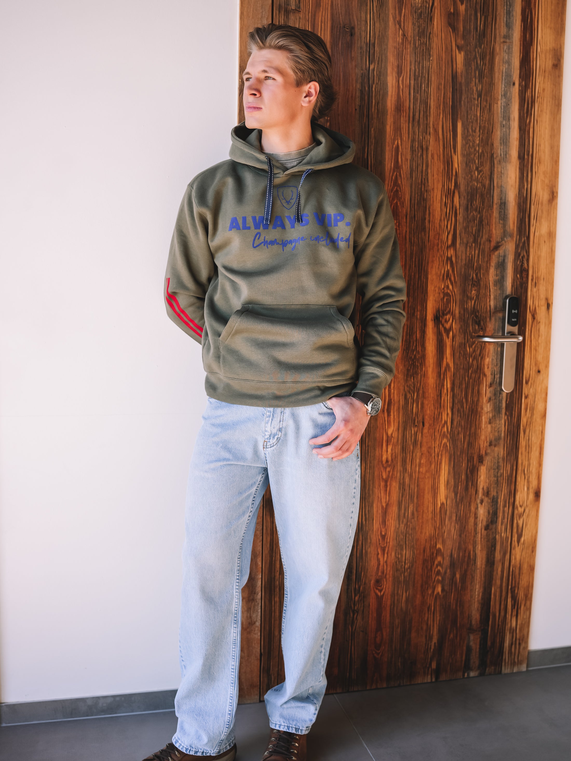 Lässig, selbstbewusst und mit einem Hauch Exklusivität. Der Hoodie „Club Level“ steht für einen entspannten Stil mit klarer Haltung. Der markante Print „Always VIP. Champagne included.“ bringt genau dieses Gefühl auf den Punkt.