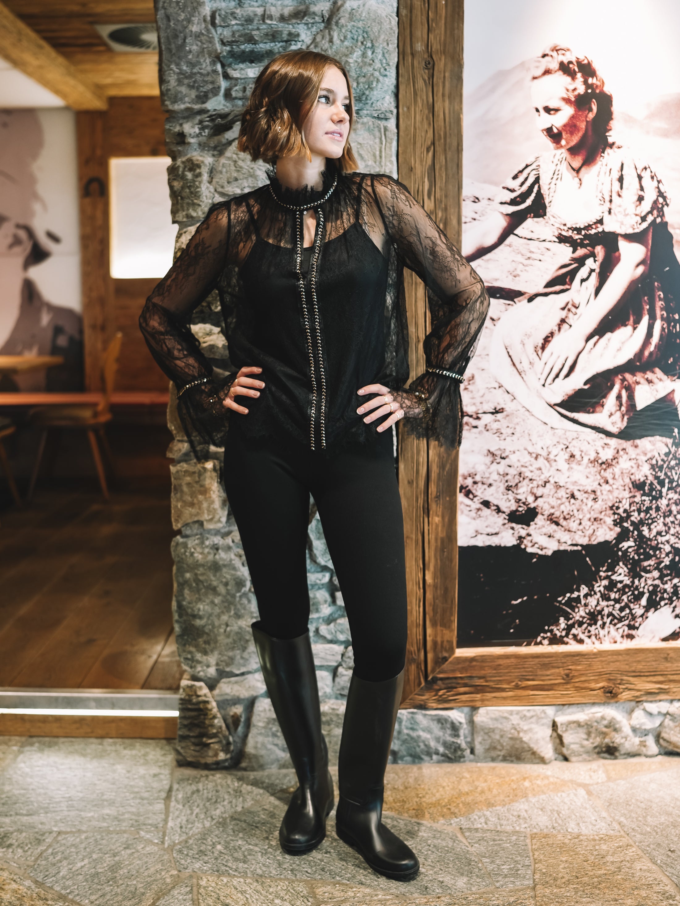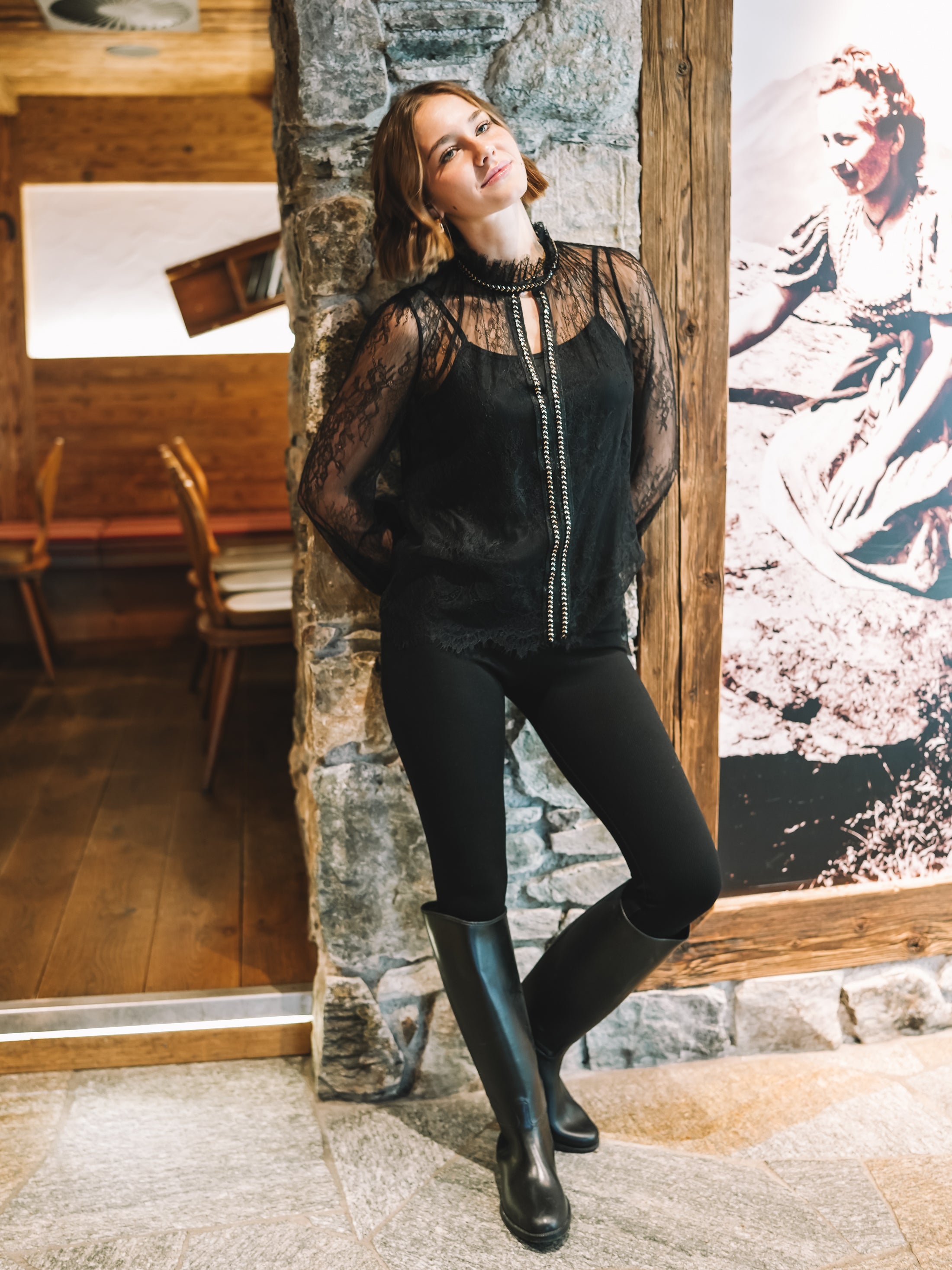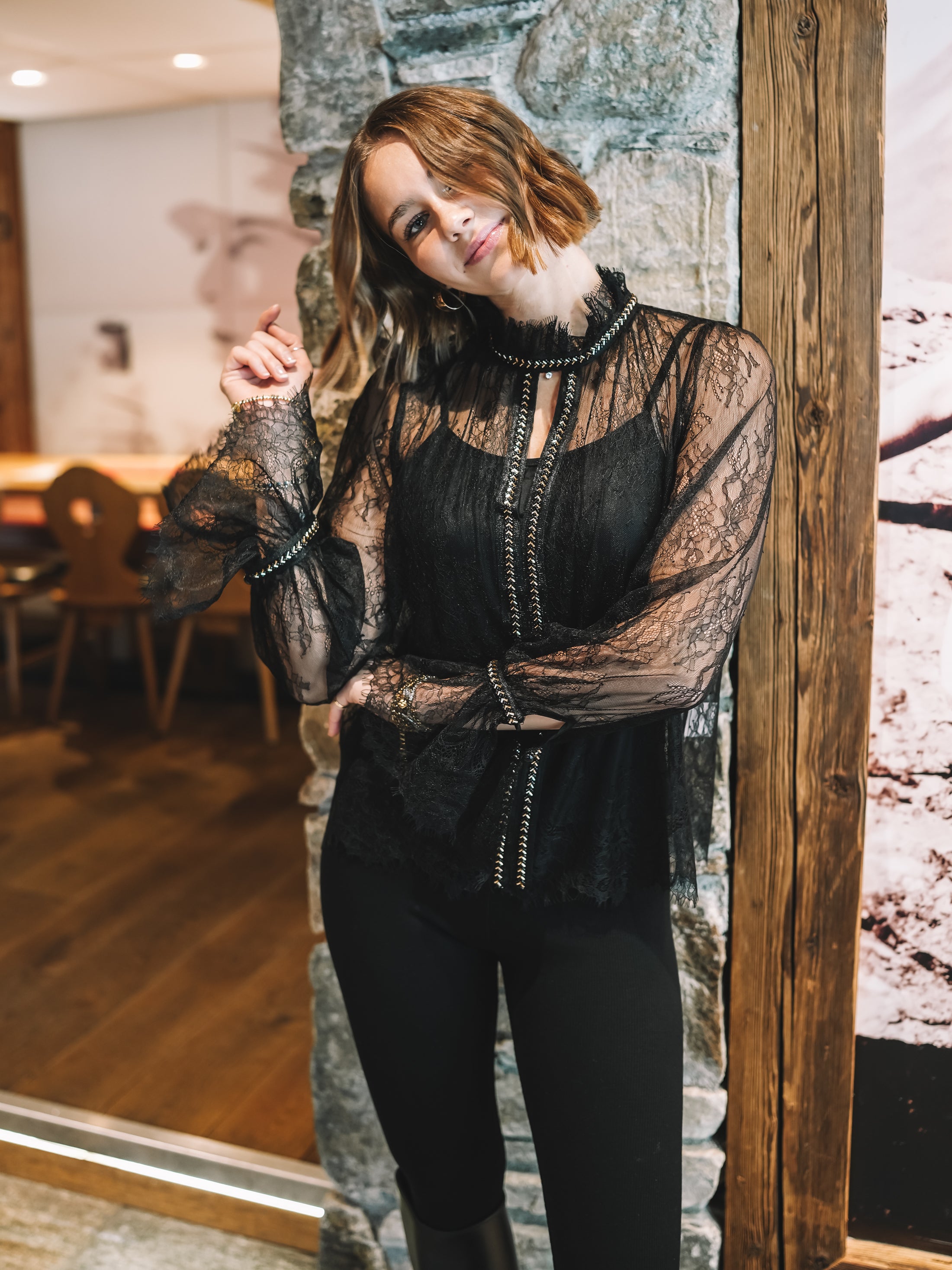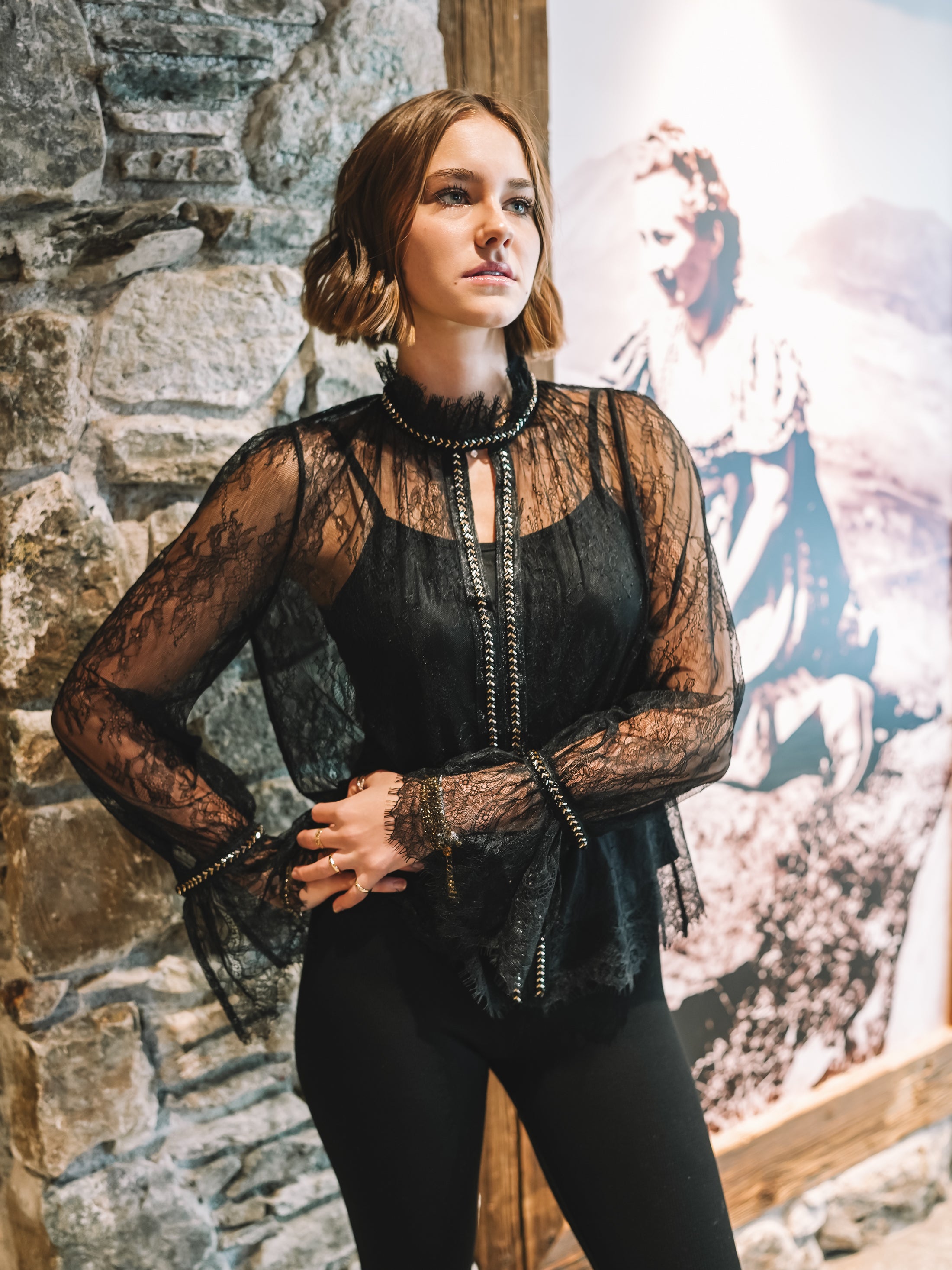 Die zarte Spitze fällt weich und feminin, die leicht ausgestellten Ärmel unterstreichen den poetischen Charakter dieses Pieces. Für ein stimmiges Gesamtbild ist ein separates Top zum Darunterziehen bereits inklusive – so bleibt der Look stilvoll, aber wandelbar.