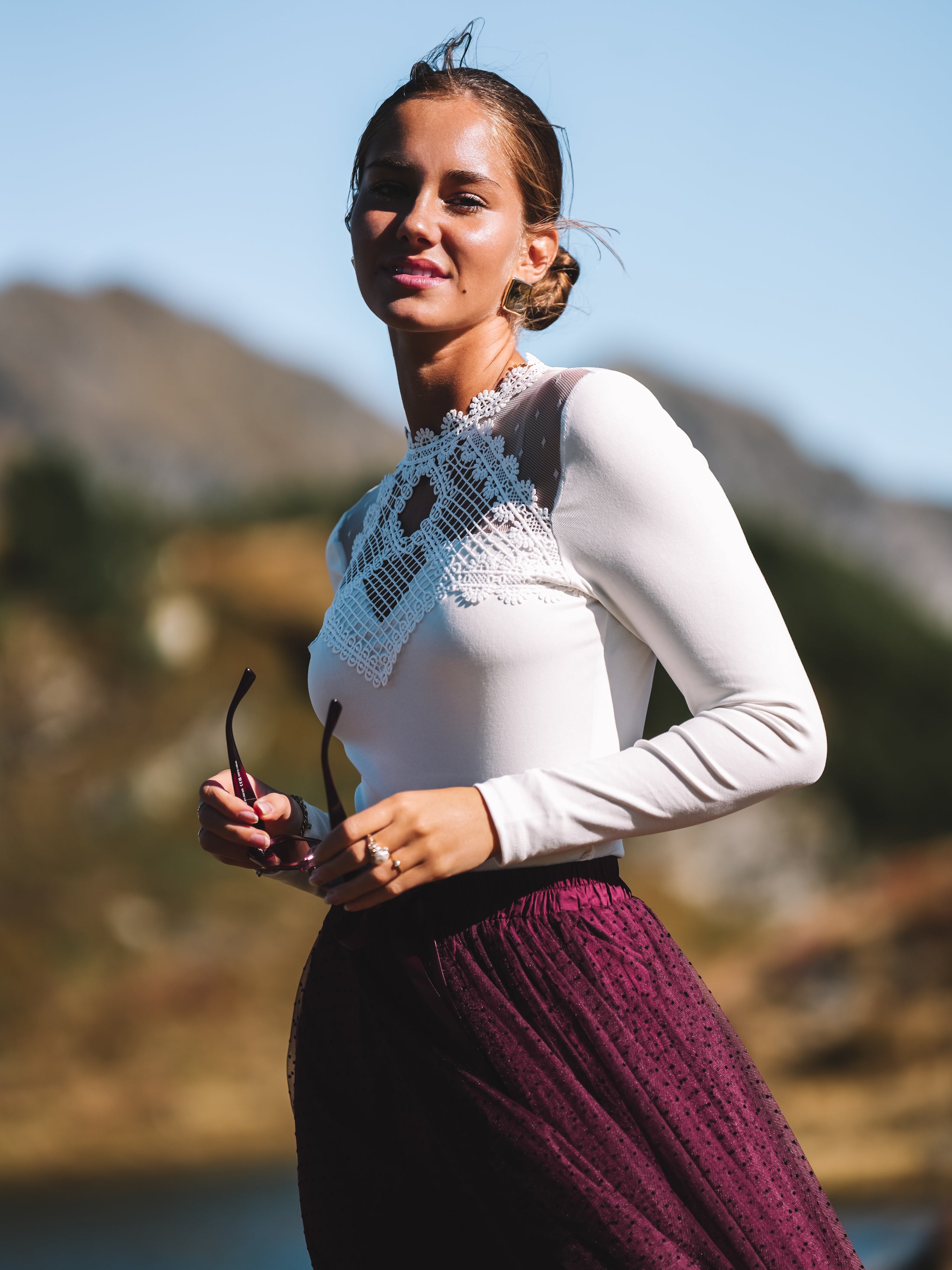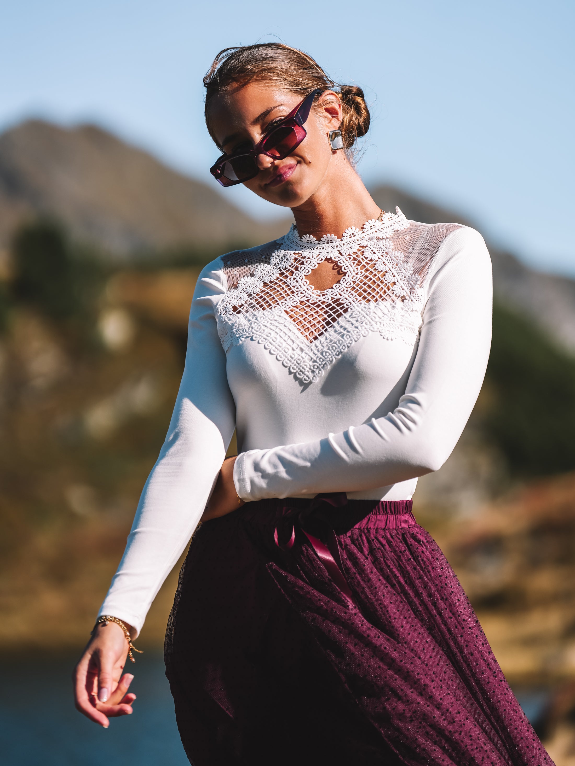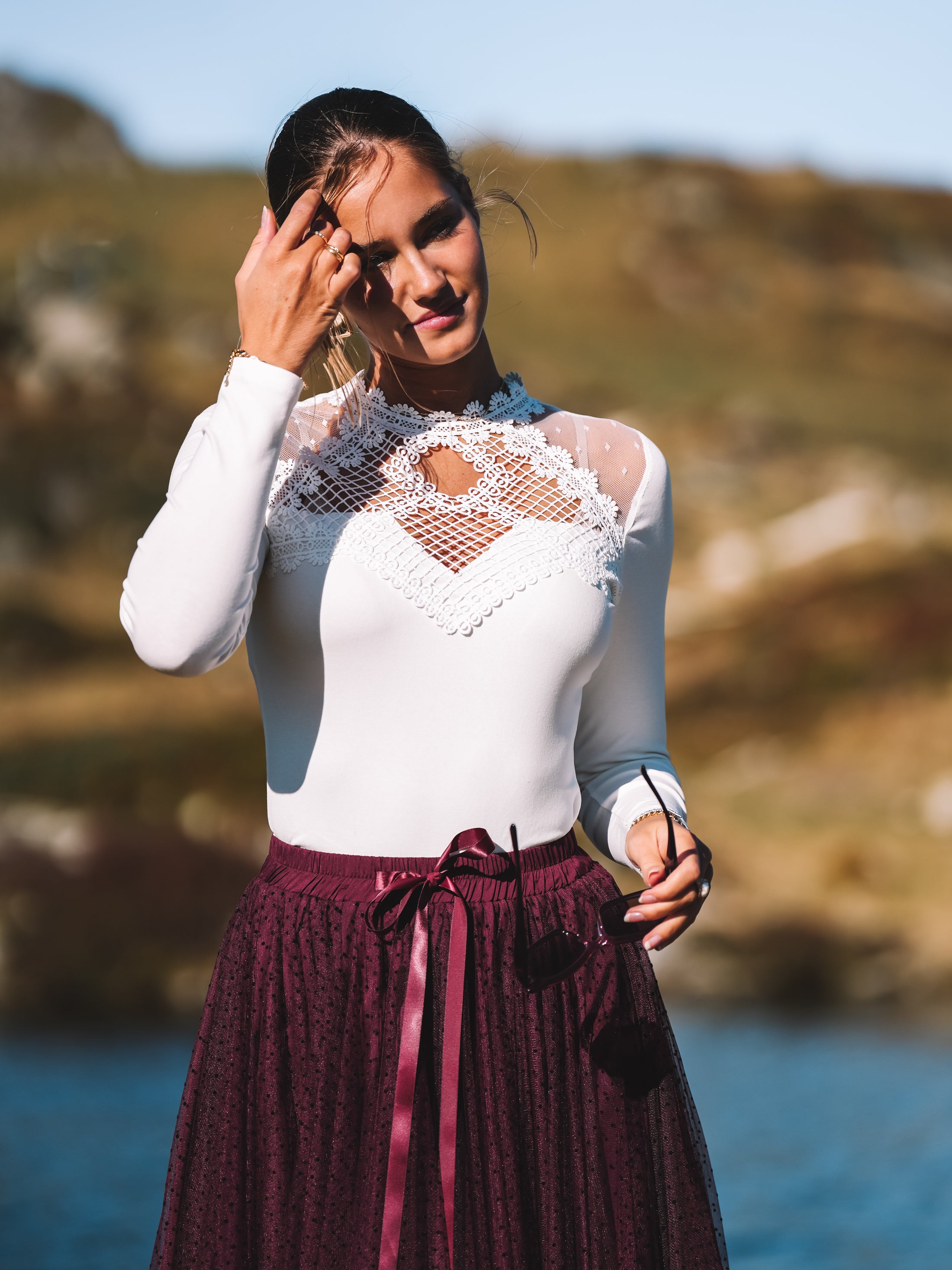 Ob zur Tracht, zu edlen Röcken oder als stilvolles Fashion-Statement – dieser Body schenkt jedem Look eine romantische und zugleich extravagante Note.