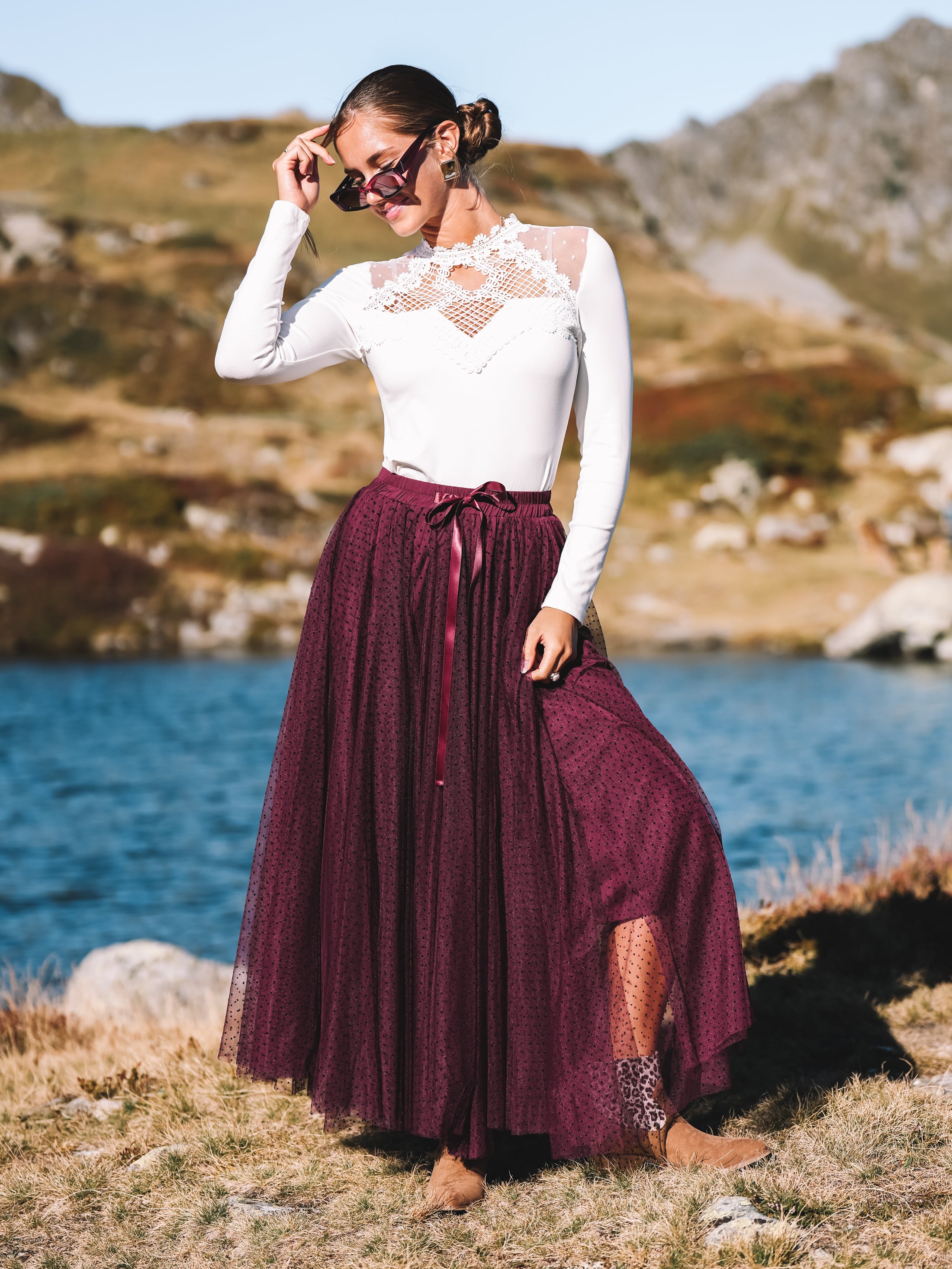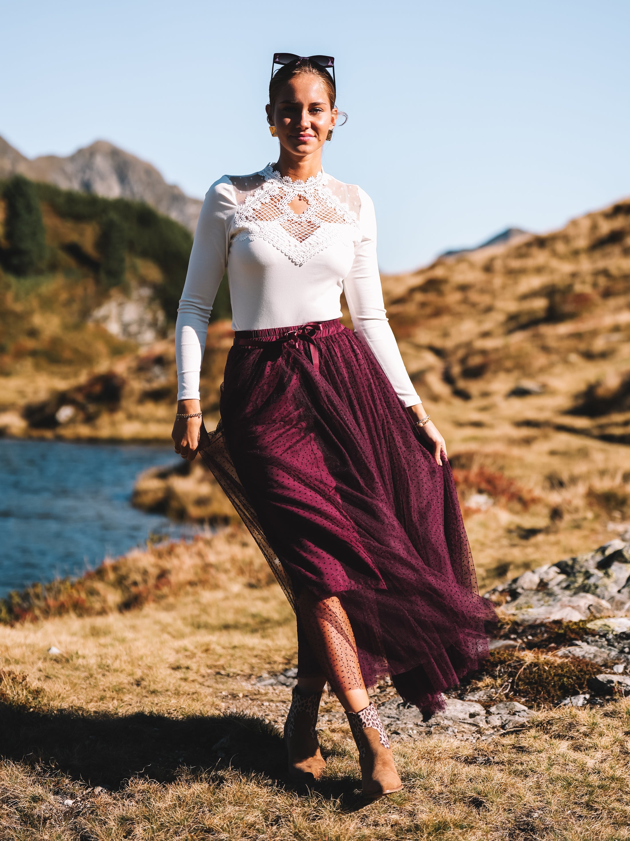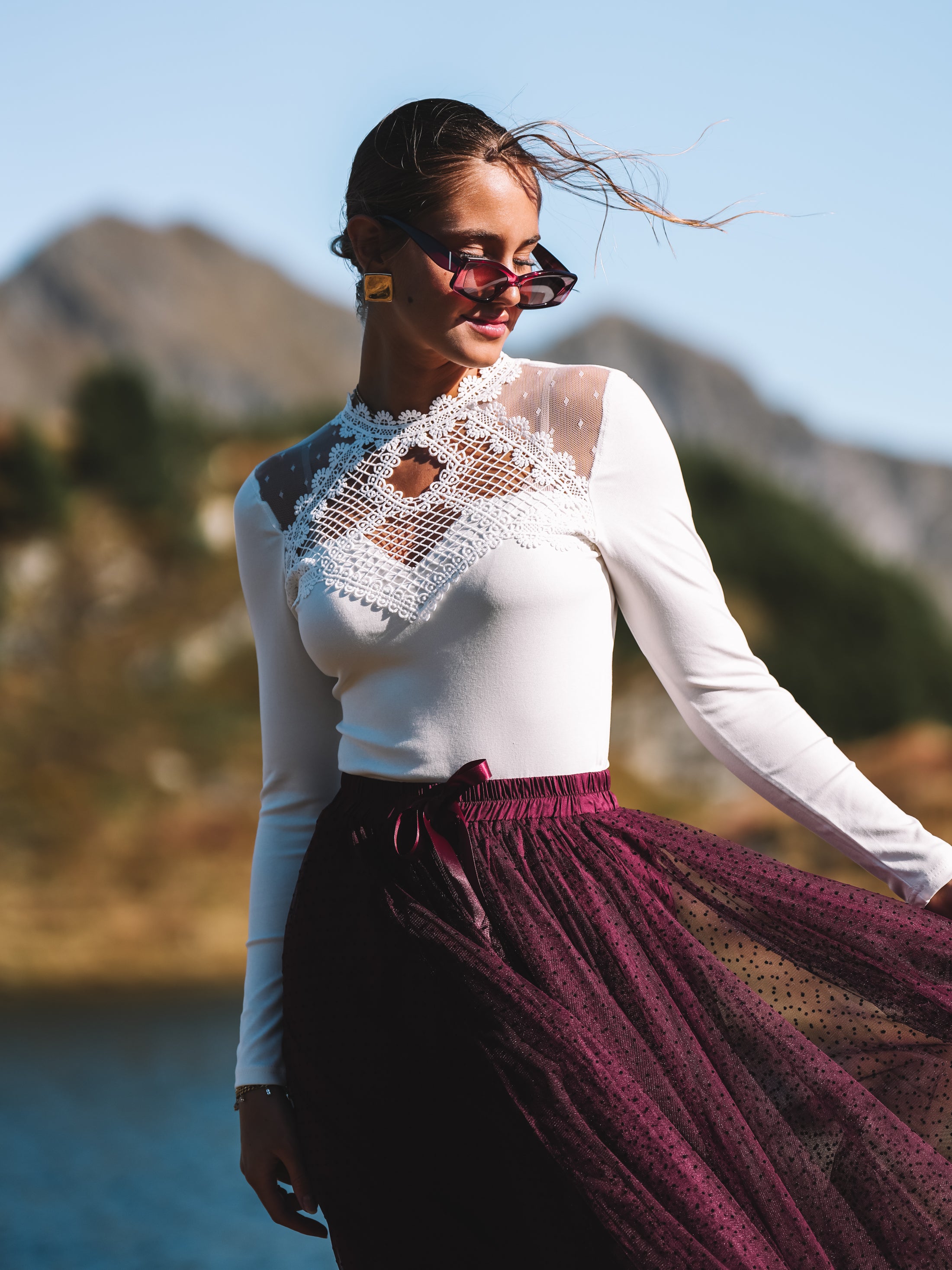 Ob zur Tracht, zu edlen Röcken oder als stilvolles Fashion-Statement – dieser Body schenkt jedem Look eine romantische und zugleich extravagante Note.
